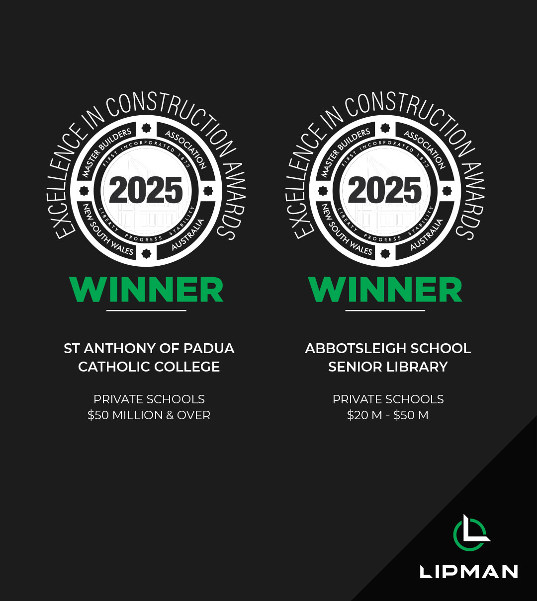 On Saturday, Lipman proudly attended the Master Builders Association of New South Wales Excellence in Construction Awards, an event that recognises the highest standards in our industry.