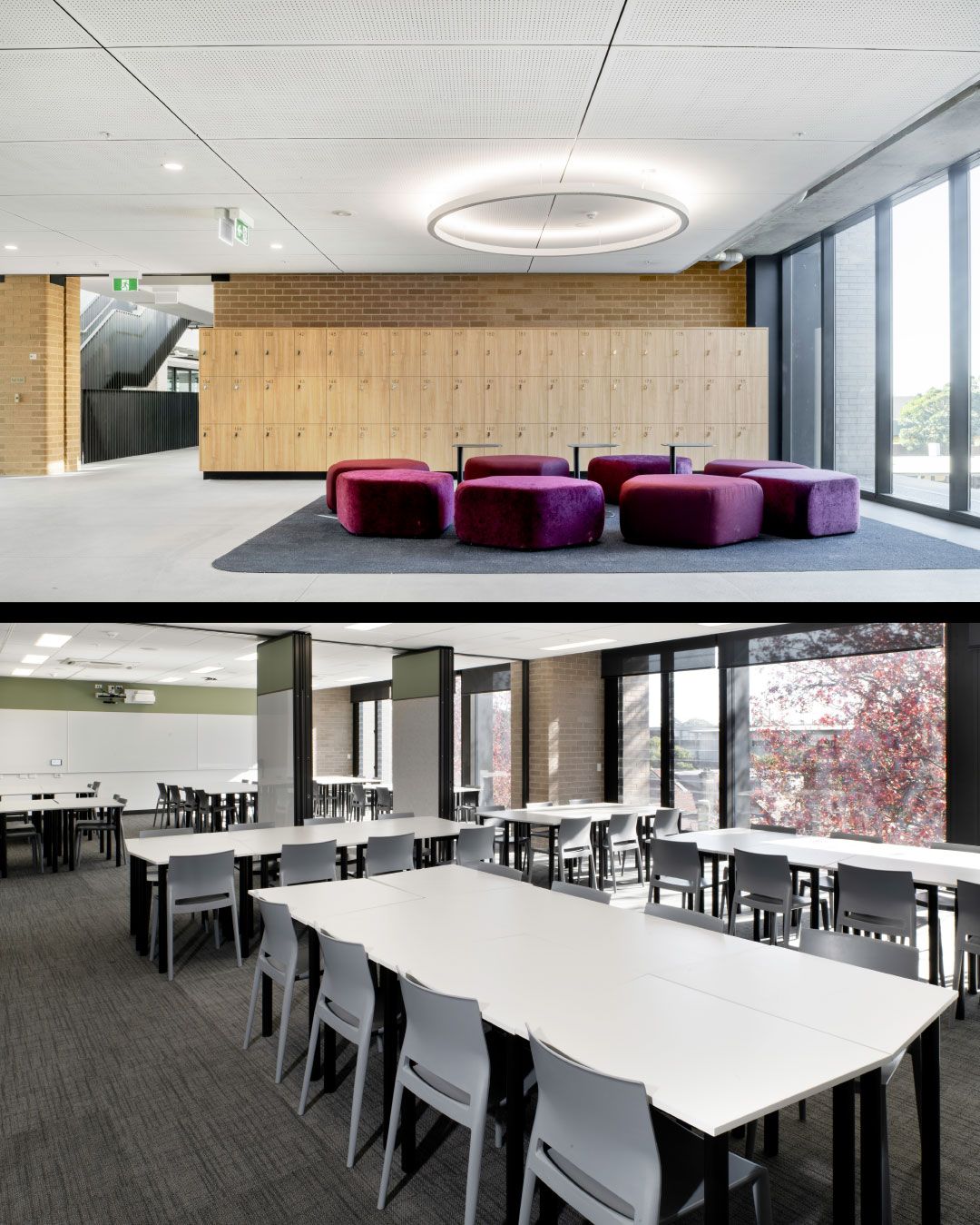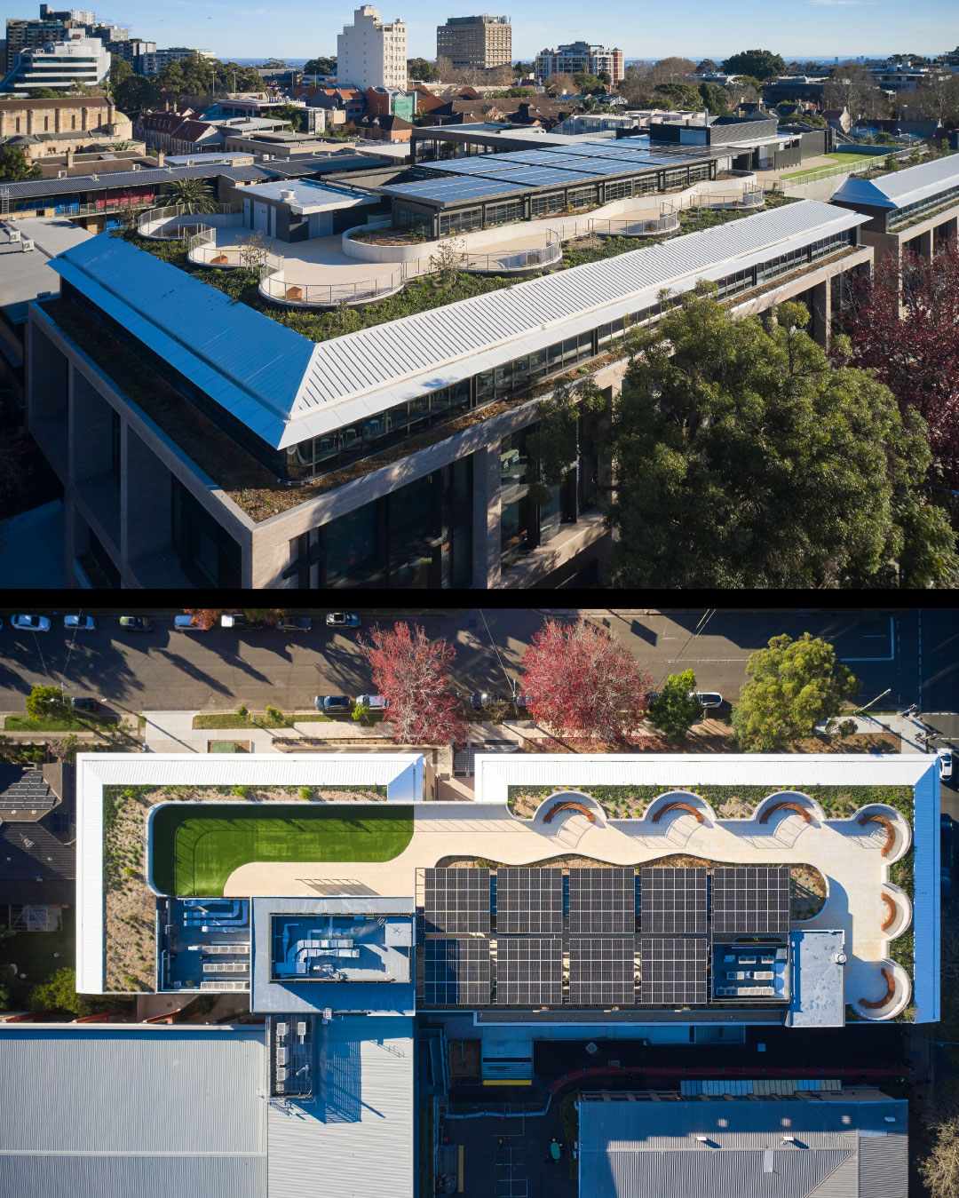 This remarkable development supports the vision of a connected, vertical K–12 education precinct in the heart of North Sydney. Delivered in a live school environment, the project features standout design elements including jumbo glazed façade panels, hanging brickwork, off-form concrete finishes, and 99KV of rooftop solar panels.