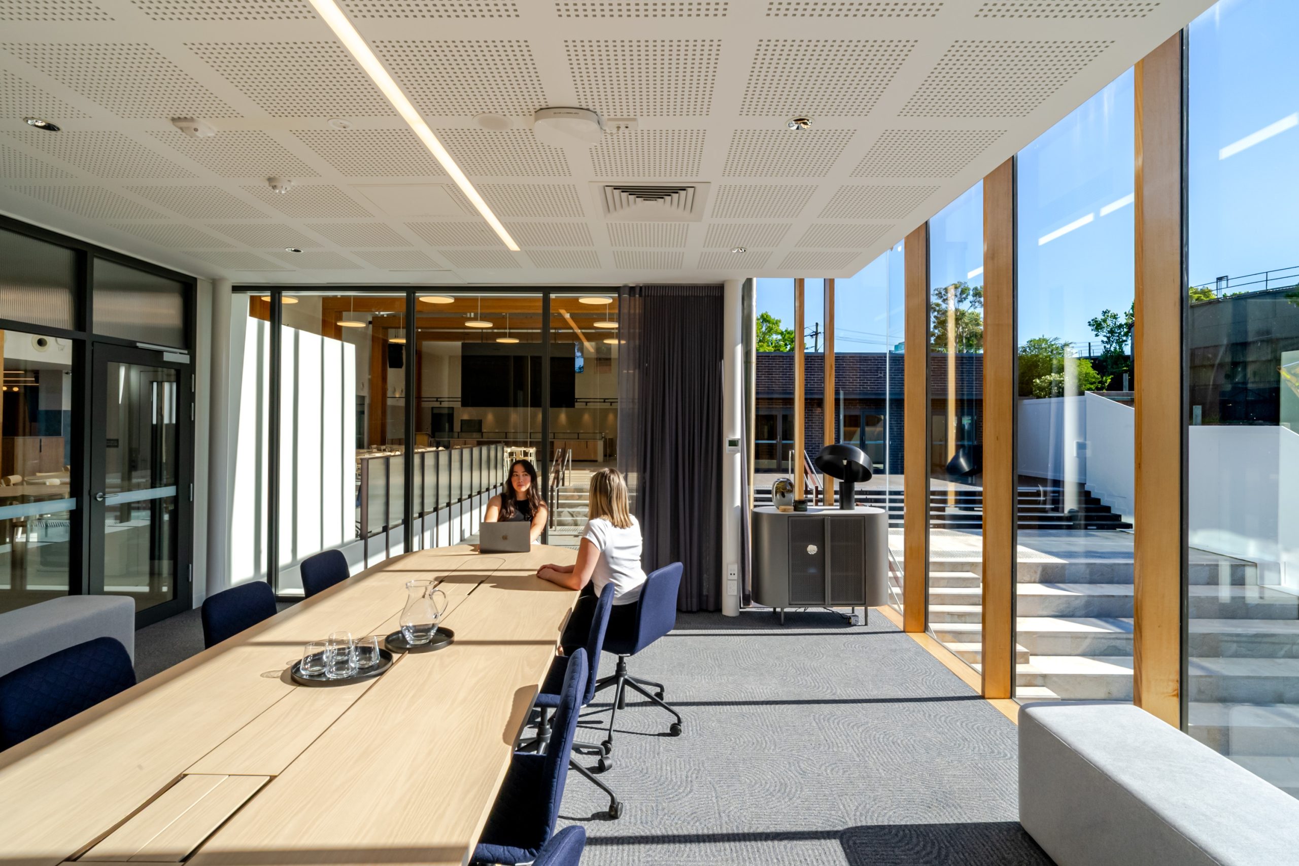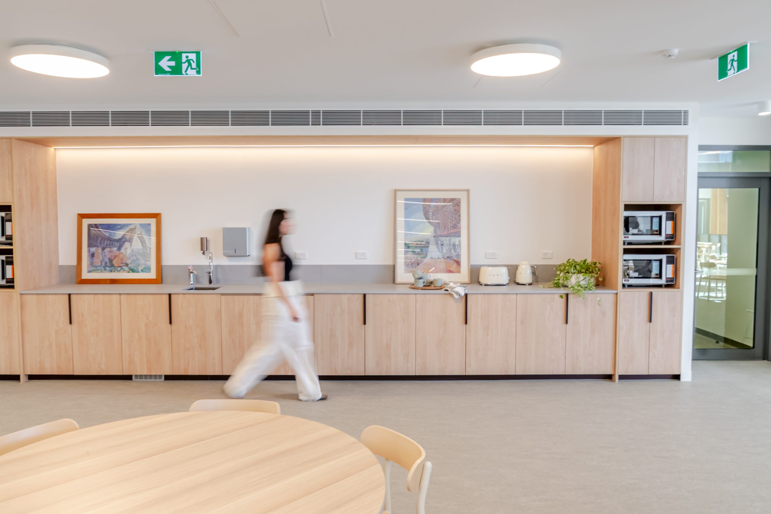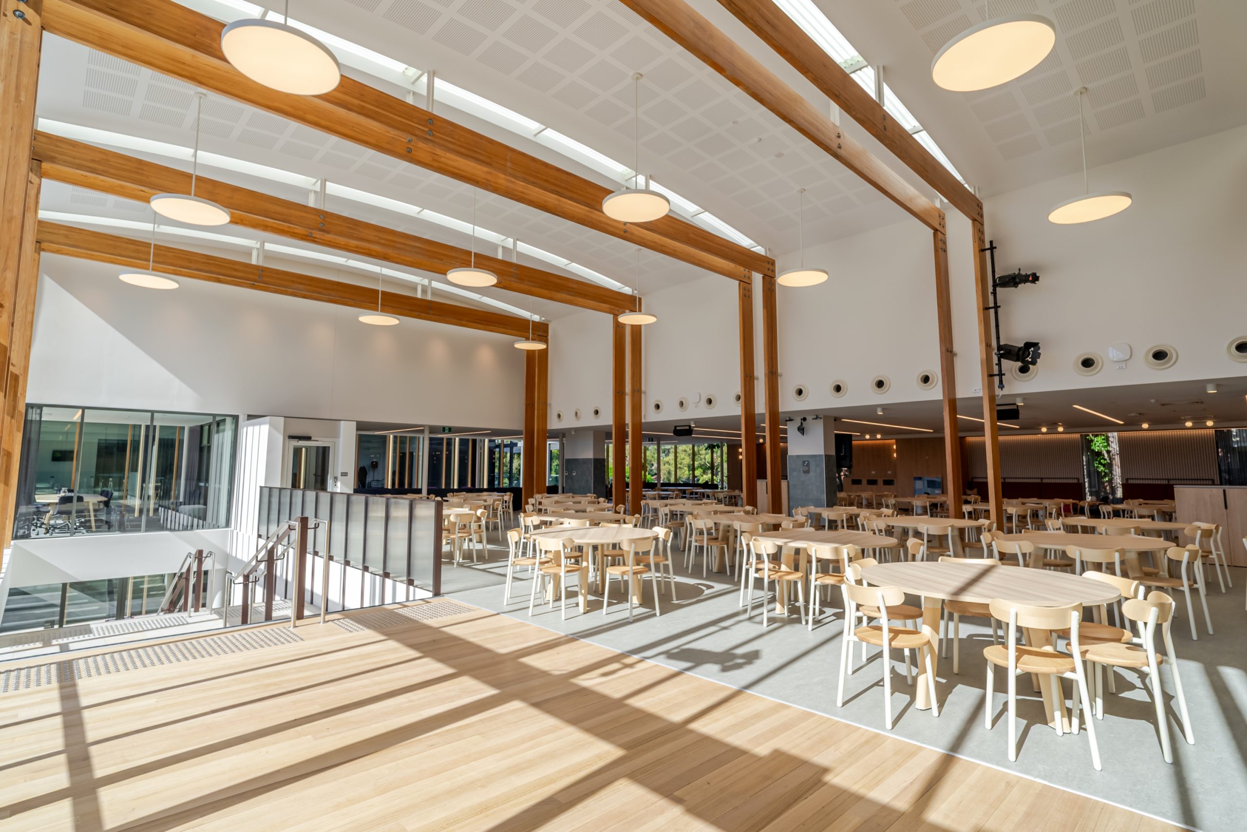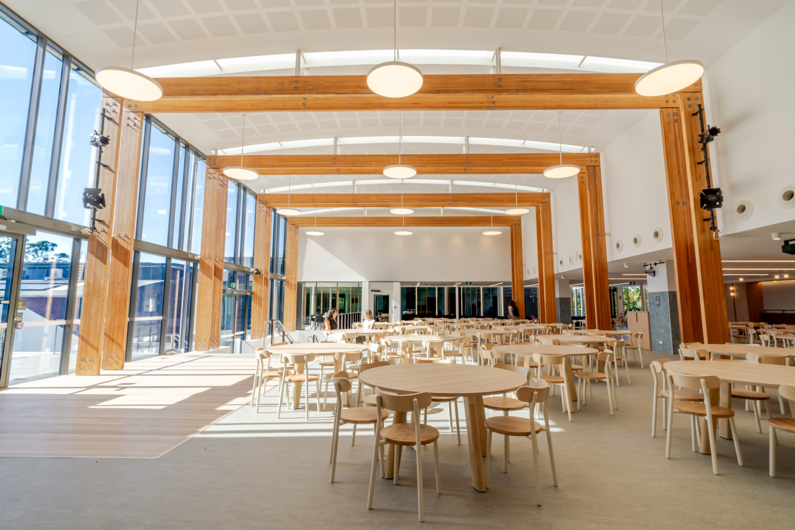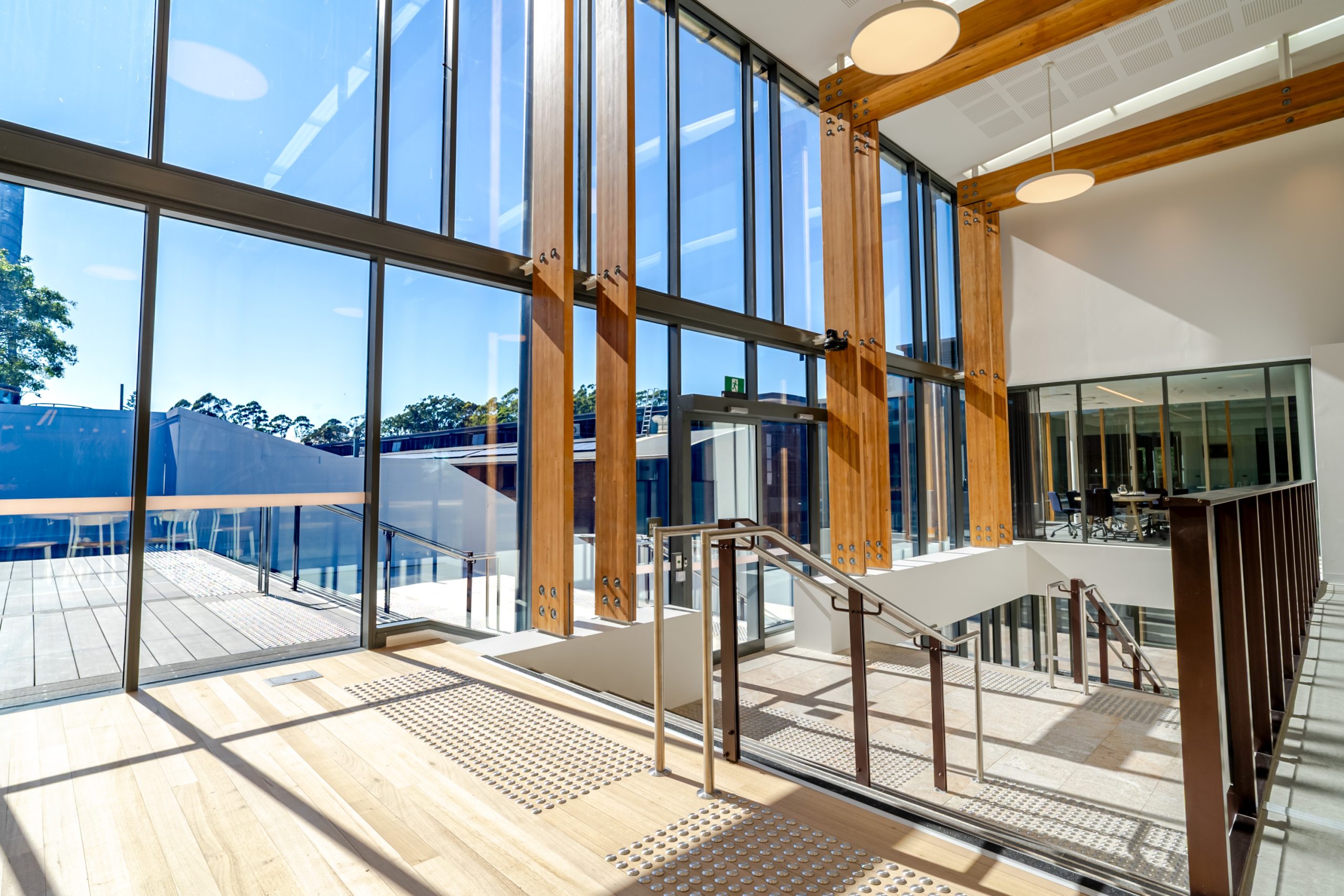 Level 2 was also refurbished to provide a new commercial kitchen, servery, café, lounge, dry store, cool room, freezer, dish drop, office, amenities and entry / common areas. New metal roofing and façade openings, doors and glazing elements was also provided.